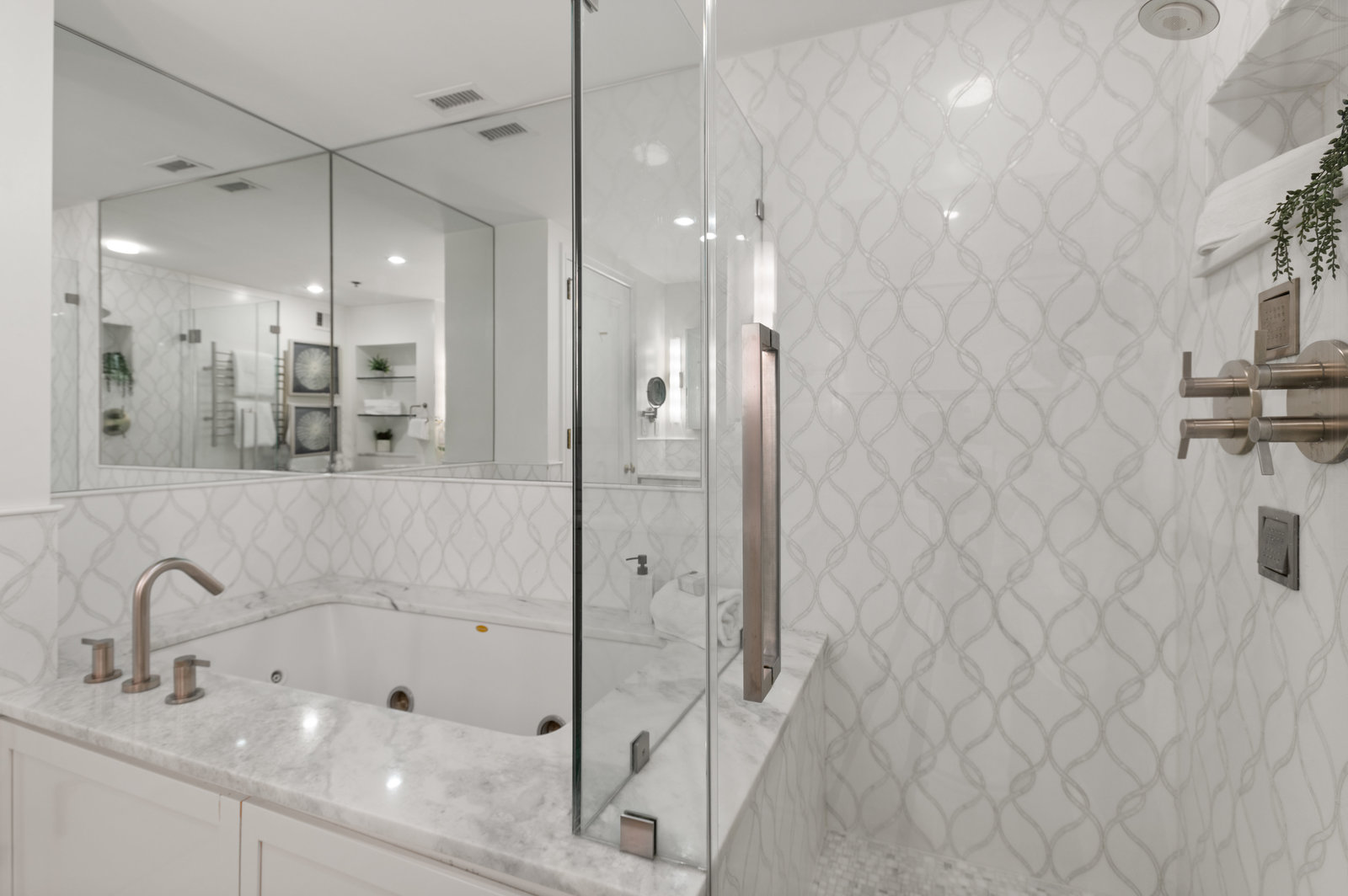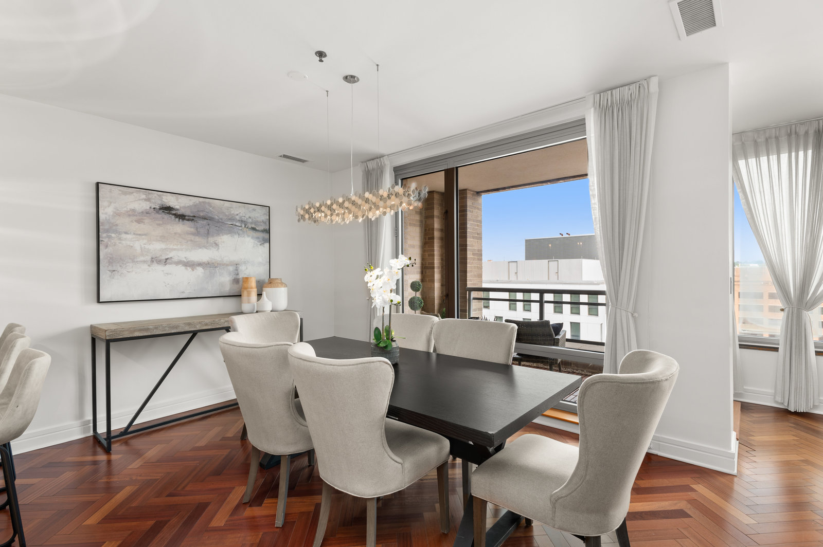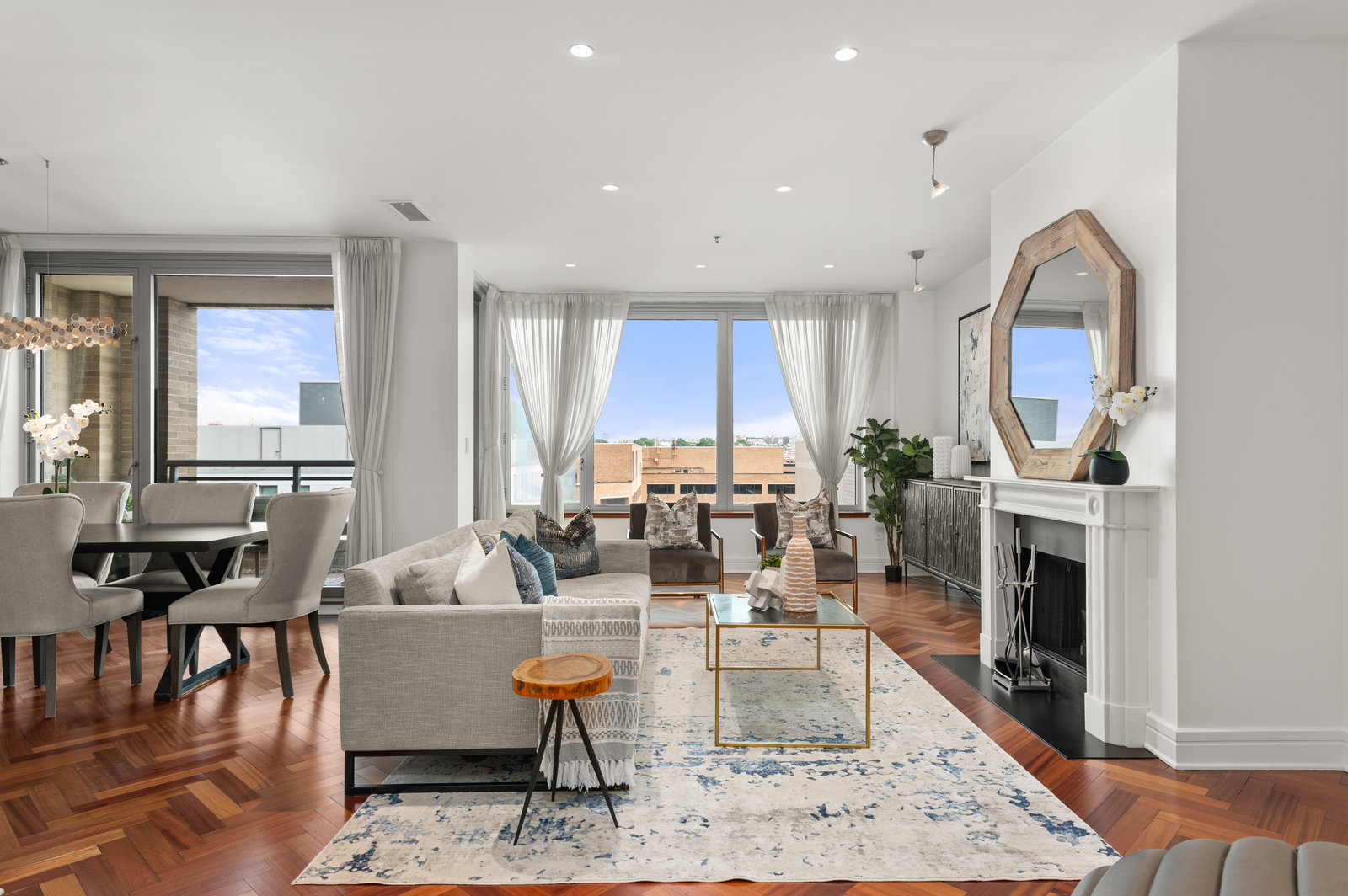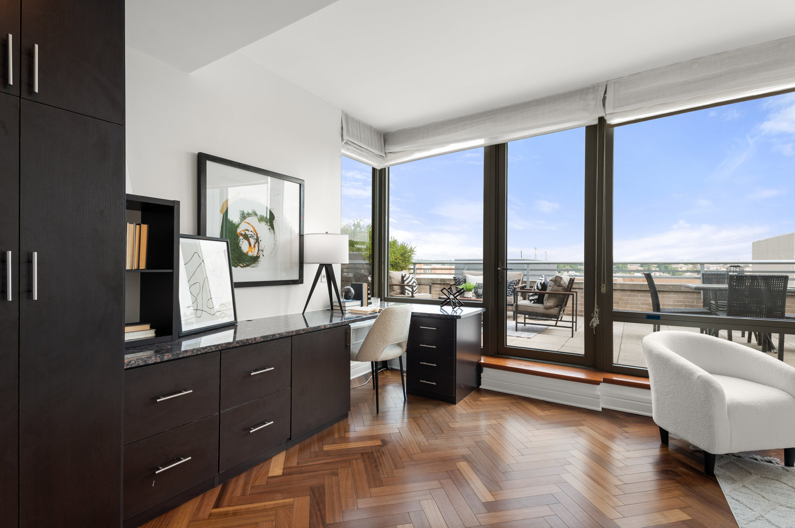 Perfectly appointed, recently renovated, and perfectly maintained: Penthouse 3N is a sprawling triplex located in the coveted Residences at The Ritz Carlton in the District’s bustling West End neighborhood. Boasting the height of luxury living and full-service building amenities, this enviable Penthouse unit offers the pinnacle of urban living with all the modern conveniences of today’s lifestyle. Showcasing 2 Bedrooms and 2.5 Bathrooms across 3 levels and 2,050 total square feet, the sensational unit features timeless design notes to include elegant millwork, mahogany herringbone flooring, and walls of windows flooding the residence’s living spaces with natural light. Complementing the penthouse’s pristine interiors, the showpiece offers coveted outdoor living spaces to include a Main Level and Bedroom Level Balcony, as well as a Rooftop Terrace with magnificent National Cathedral and city views.
